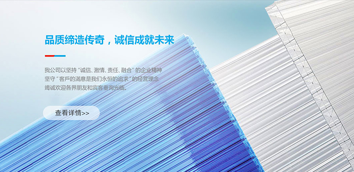 公司致力于各种PC聚碳酸酯板材的研发与生产,目前拥有多条独立的PC板材挤出生产线,先进成套的生产设备。制造和供应PC聚碳酸酯阳光中空板,实心耐力板,PC四层板,PC蜂窝板,PC条纹板,PC中空瓦棱板,PC实心瓦等各类采光板材。